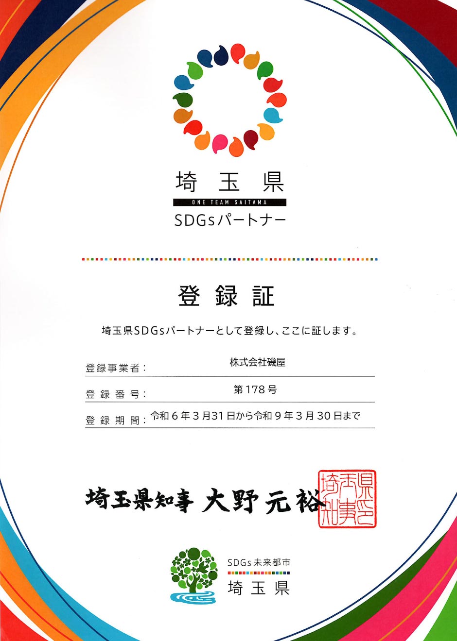 This certifies that the above-named company is registered as a Saitama SDGs Partner.